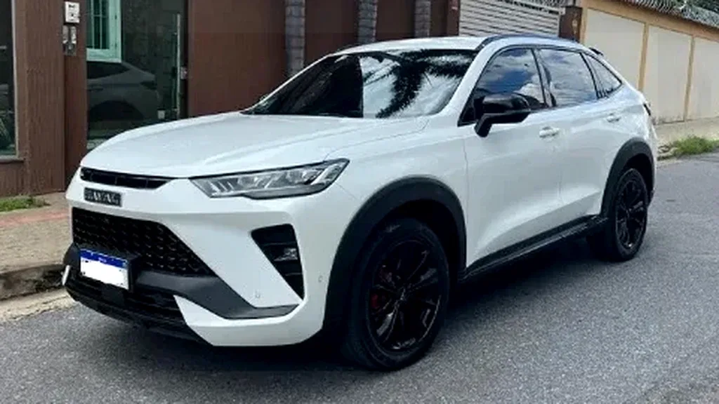 - Estilo: Silhueta cupê com rodas de 19 polegadas, pinças vermelhas e detalhes que imitam fibra de carbono.