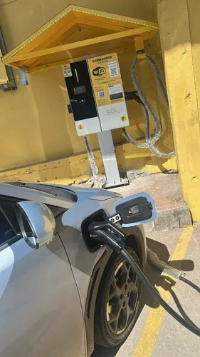 Agora contamos com dois carregadores que podem recarregar até três carros simultaneamente. O carregador de 120 kW aceita pagamentos via cartão de crédito. O carregador de 30 kW permite pagamento por PIX. Todas as informações necessárias estão disponíveis diretamente nos carregadores.