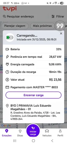 Funcionando hoje dia 31/12/25, com potência média de 24KwH de recarga. Os dois pontos rápidos de recarga estão funcionando (08h36).