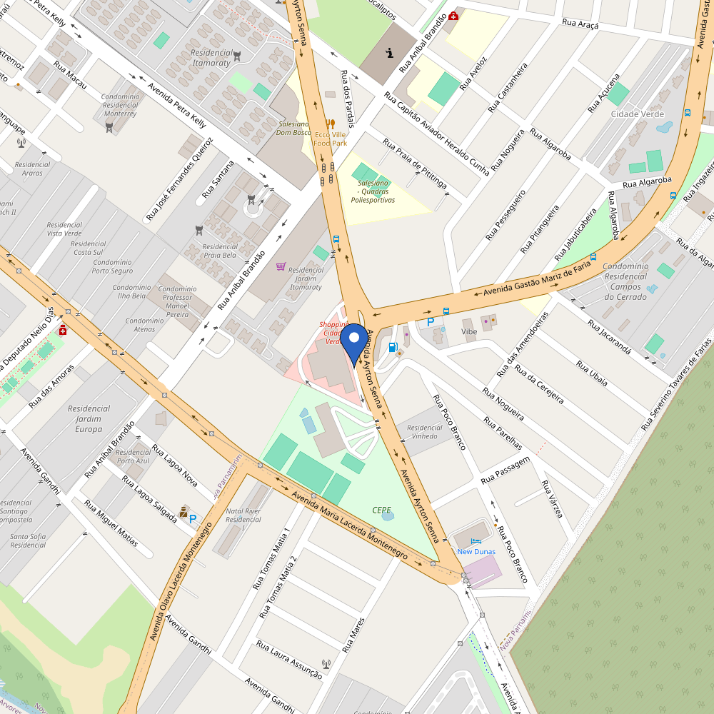 - Estação localizada no estacionamento do shopping (relatos mencionam 'Shopping Cidade Verde' e 'Shopping Cidade')