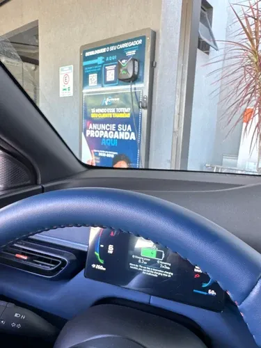 Carregador no estacionamento, carregando entre 5,4 e 6,0 kw, poderia ser melhor, sim, mas ja ajuda muito levando em consideração o carregamento caríssimo da Volvo em Coxim, que direto ta com problema, vamos organizar para colocar um carregador rapido na cidade, ai fica perfeito