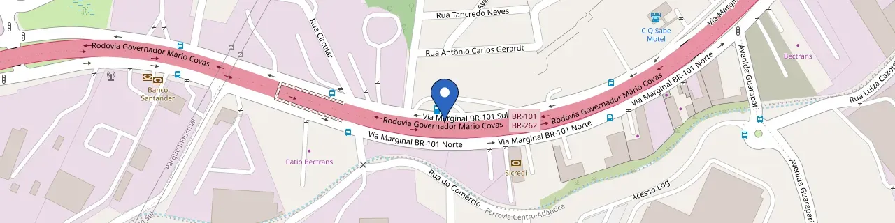 • Dois acessos disponíveis; acessar pela pista paralela à direita 1 km antes para evitar contorno pelo bairro
