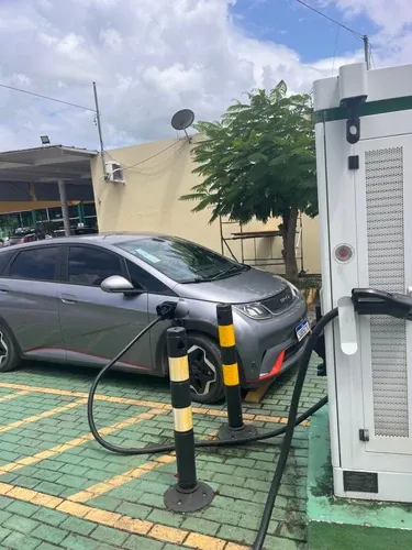 Carregador funcionando perfeitamente carregando a 48,4kw lanchonete e banheiros próximo
