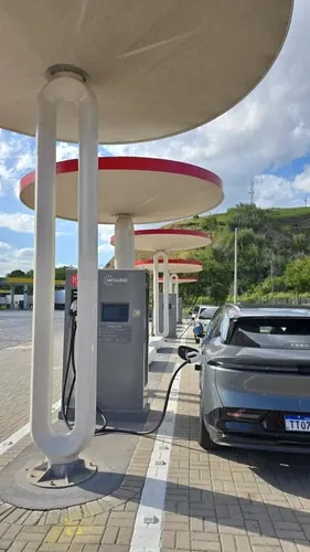 - Há 6 pontos de carregamento rápido, com conectores de até 150 kW.