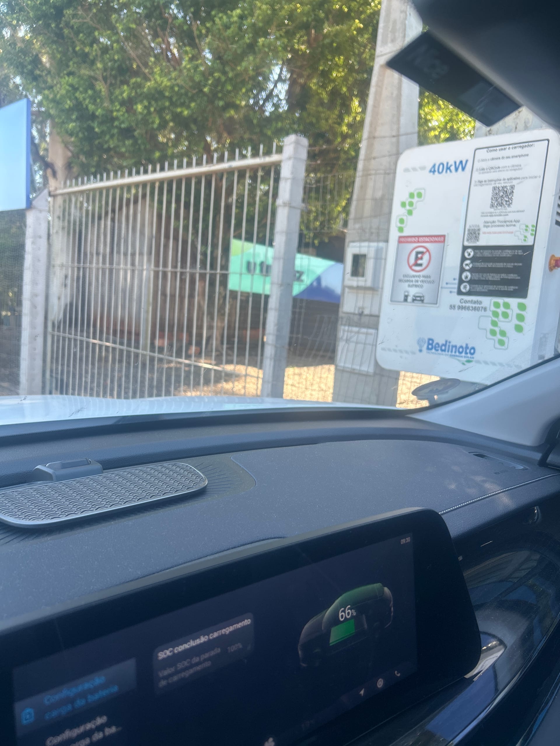 Carregador de 40kw com uma tomada e pagamento por pix ou cartão. O app deles é muito prático, mas a potência de recarga não passou de 25kw no dolphin mini