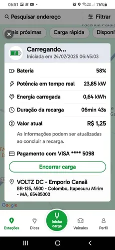 Utilizei ontem dia 07/12/2025. A parte da frente do carregador tá interditado para obras, mas dar pra estacionar bem atrás e utilizar o carregador de boa. Tudo funcionando 100%.