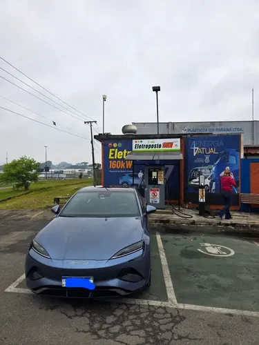 Carregador de 120 kW com 2 plugs CCS2 no pátio aberto da Plásticos Paraná.