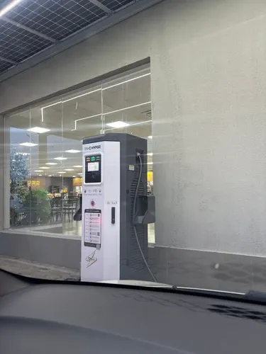 Coberto, fácil de encontrar. 3 carregadores sendo 2 rápidos. Estavam todos vazios quando cheguei. Tem loja de conveniência.