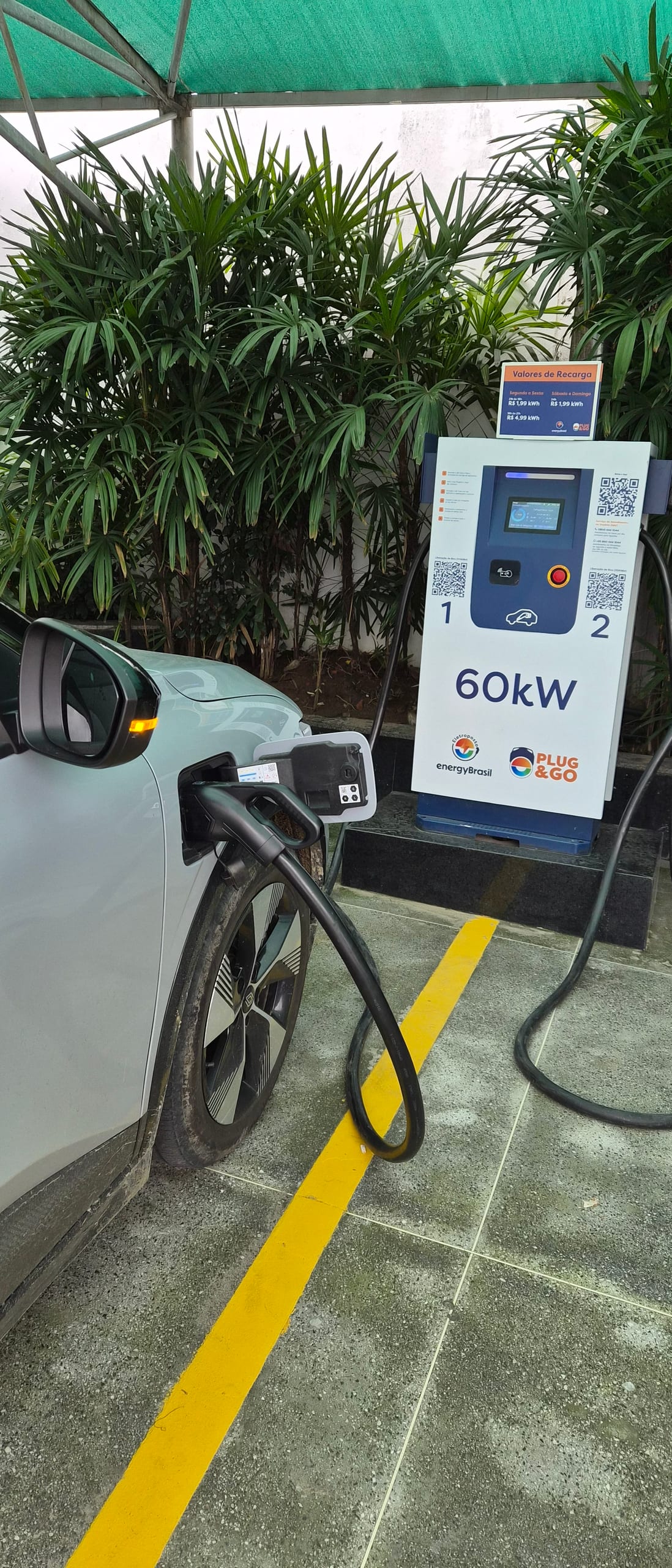 Carga rápida. Excelente. Área coberta em posto de gasolina bem completo.